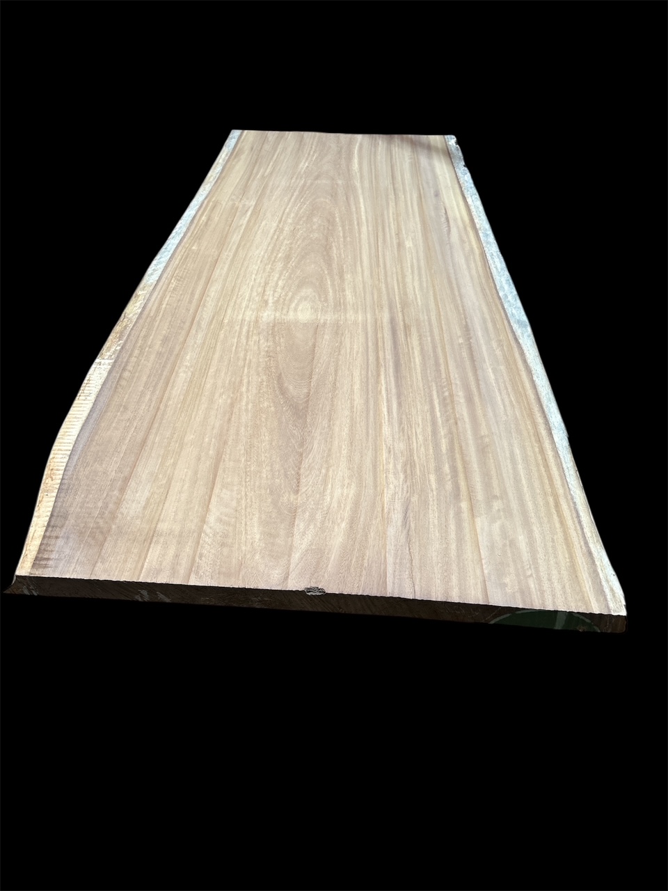 Tablón de madera de Iroko de 315 x 130 x 7 cm, pieza única de madera natural maciza, fabricada de manera artesanal con origen desde nuestra fábrica.